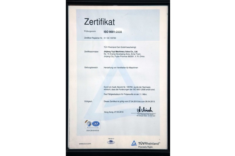 晉江煜億機(jī)械閥門有限公司,成立于1997,是一家外商獨(dú)資企業(yè),位于福建省有名的旅游城市泉州市的安海鎮(zhèn)裝備制造產(chǎn)業(yè)基地。公司建筑面積近36000平方米,擁有員工200余人,其中技術(shù)人員和管理人員20余人。公司組成包括精密鑄造車間、砂型鑄造車間、機(jī)加車間。我們從2001年起就獲得了TUV認(rèn)證機(jī)構(gòu)頒發(fā)的ISO9001的證書,從2007年起就持續(xù)獲得TUV認(rèn)證機(jī)構(gòu)頒發(fā)的PED證書。我們公司的產(chǎn)品遠(yuǎn)銷十幾個國家地區(qū),如美國、丹麥、德國、荷蘭、澳大利亞、中國(臺灣)、南洋。